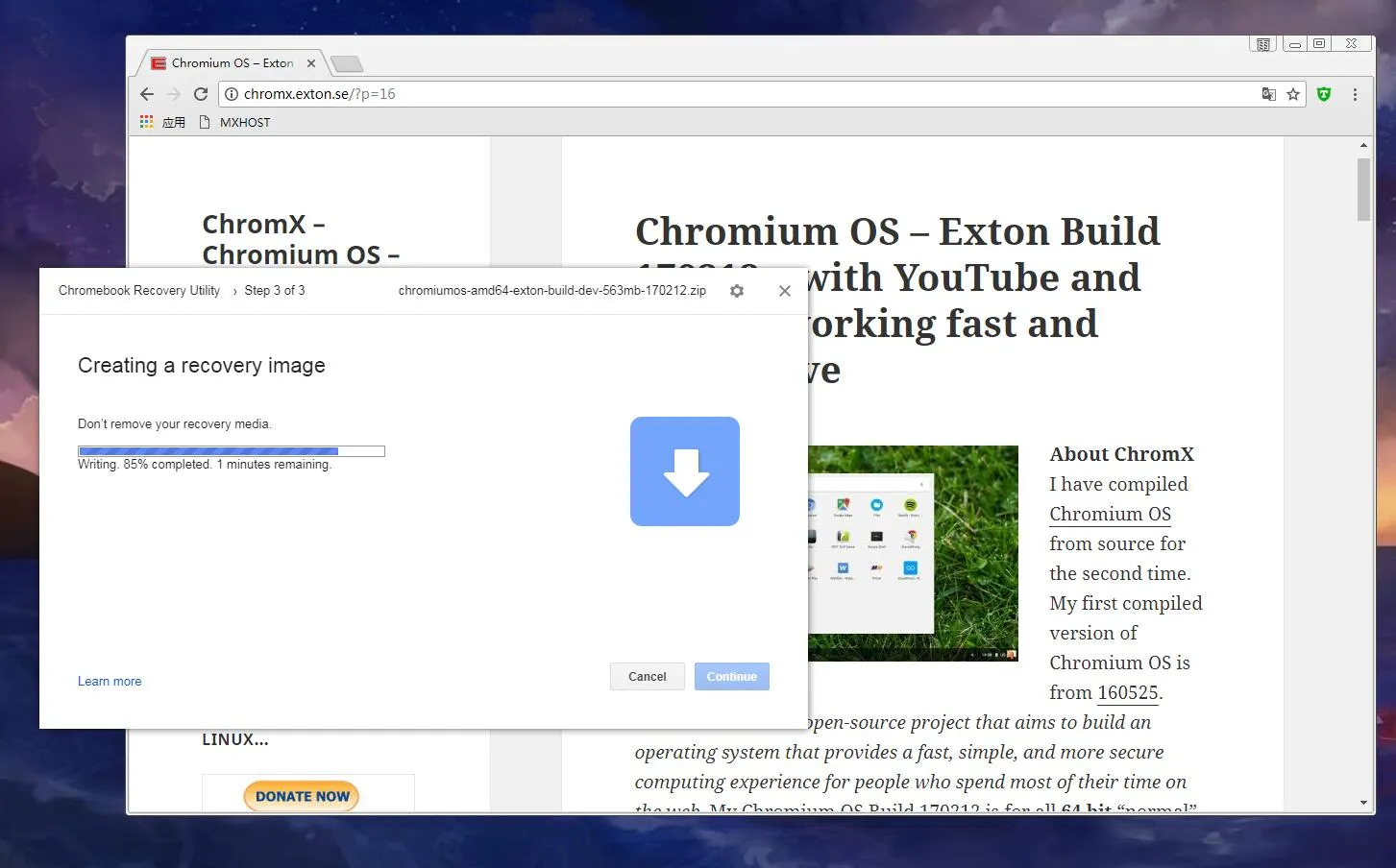 在网上突然看到Chrome OS于是就百度了一番,感觉系统很轻很酷 于是在SF找到了这个版本: https://sourceforge.net/projects/chromx/ 下载后安装,随便找了个8G U盘,先用了Win38镜像工具进行启动盘制作