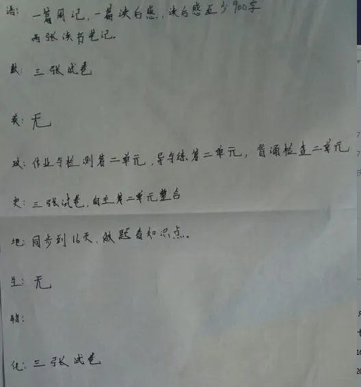 明天6点就得去学校了,作业出了生物,物理,英语,其他都没做完 晚上得通宵补作业了