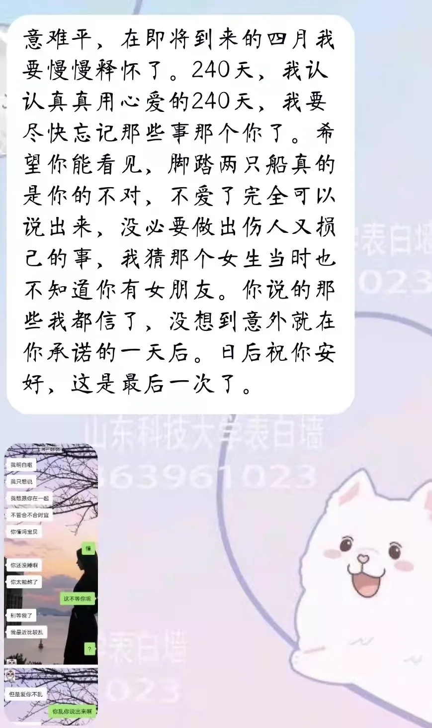 事情还是起源于今天学校的表白墙,今天一早在学校的表白墙上看到这个,然后分享给了狗蛋,一起痛骂渣男,然后其中我提到一句,“表白墙上看啥牛鬼蛇神都有”,狗蛋说其实这种人挺多人,她身边就有只是没有被锤出来而已,然后她和我讲了好多身边发生的人和事,一开始我觉得很离谱,好像不够真实,后来觉得很现实。