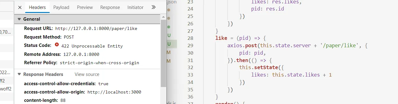 刚开始接触 FastApi 想做个小项目玩玩,前端用的React在用axios发送post请求时出现422错误??,422错误是指发送的post请求的字段和后台的接收字段不对应导致的