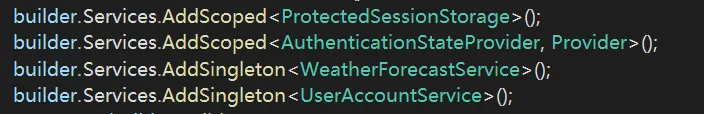 在Program里依赖注入的形式注入基础认证服务和账号服务