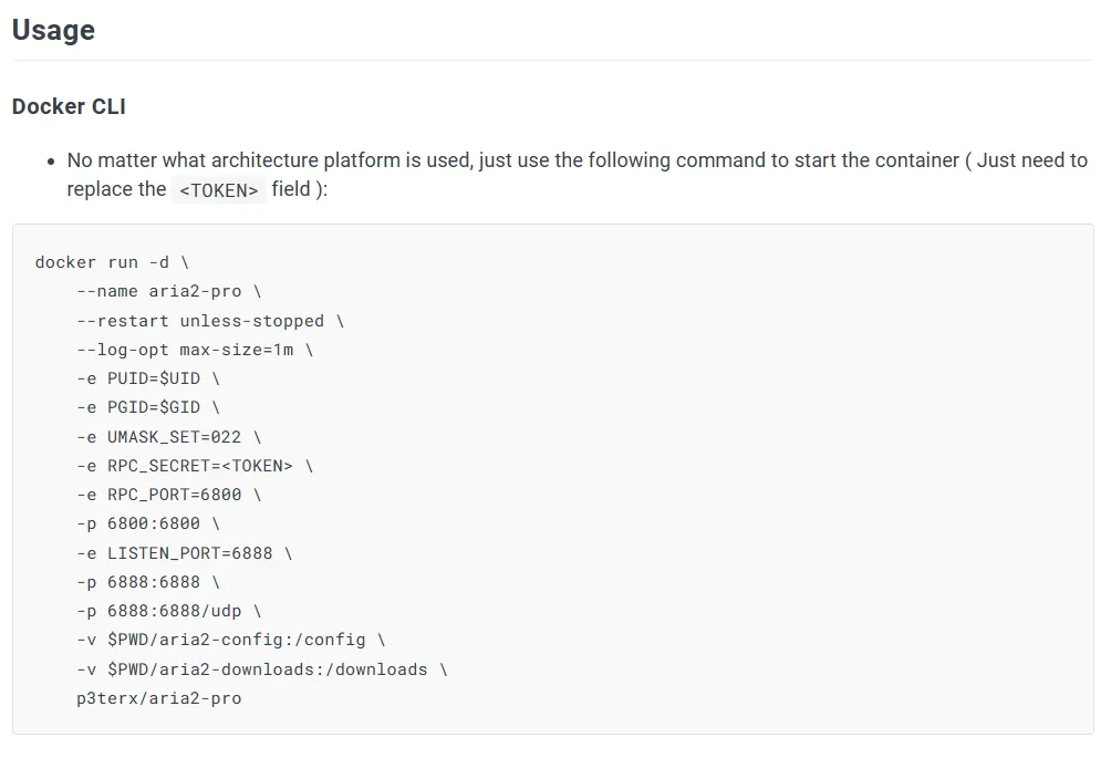 aria2这里我使用的是docker部署,有点强迫症,这类软件不想直接在宿主机上运行,直接拉取aria2-pro和ariang两个镜像,一个是aria2软件另一个ng是web前端,方便直接在网页配置和管理。