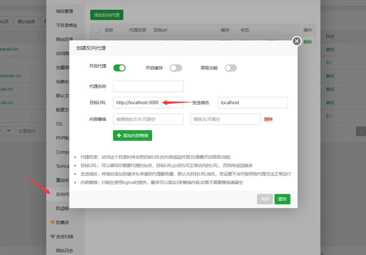 如果您是宝塔用户可以直接创建一个静态网站绑定域名,然后设置反向代理
