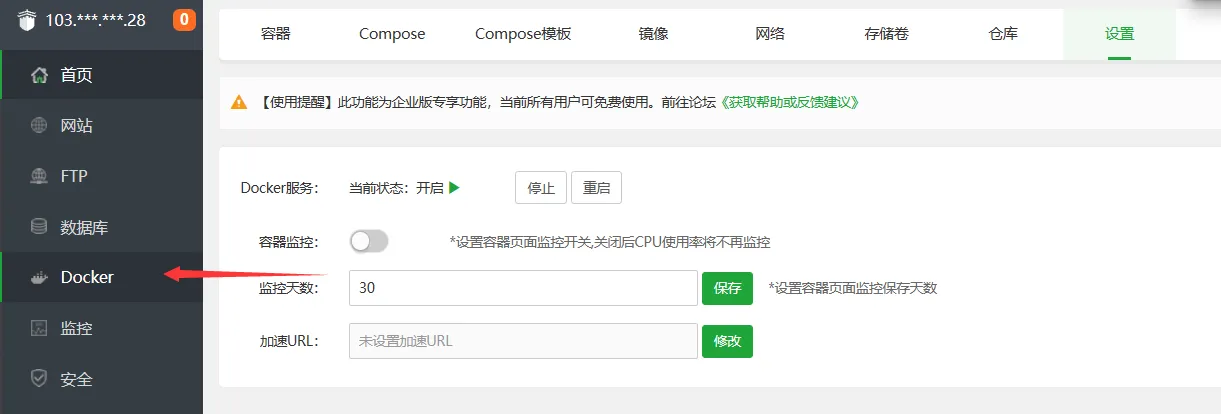 如果您使用了宝塔面板可直接在导航中选择 docker 页面根据提示自动安装即可