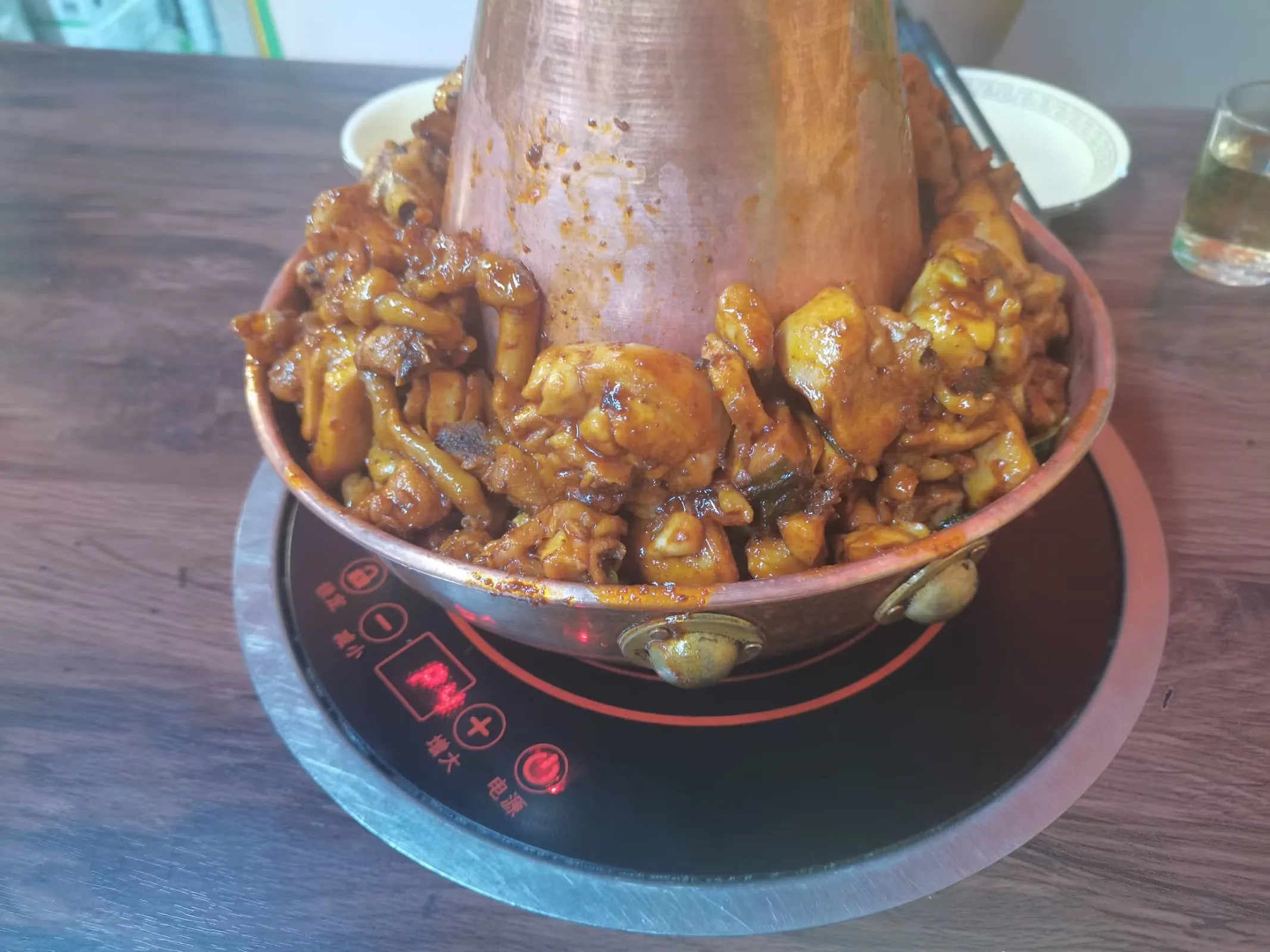 比完赛刘兰婷和已经在吃饭的地方等我啦,找了一家火锅鸡店,是她的好朋友推荐的,感觉比泰安的要好吃一些,有点甜辣,但是不是很甜,是好吃的,就是好像饿的太久了没有吃太多就饱啦