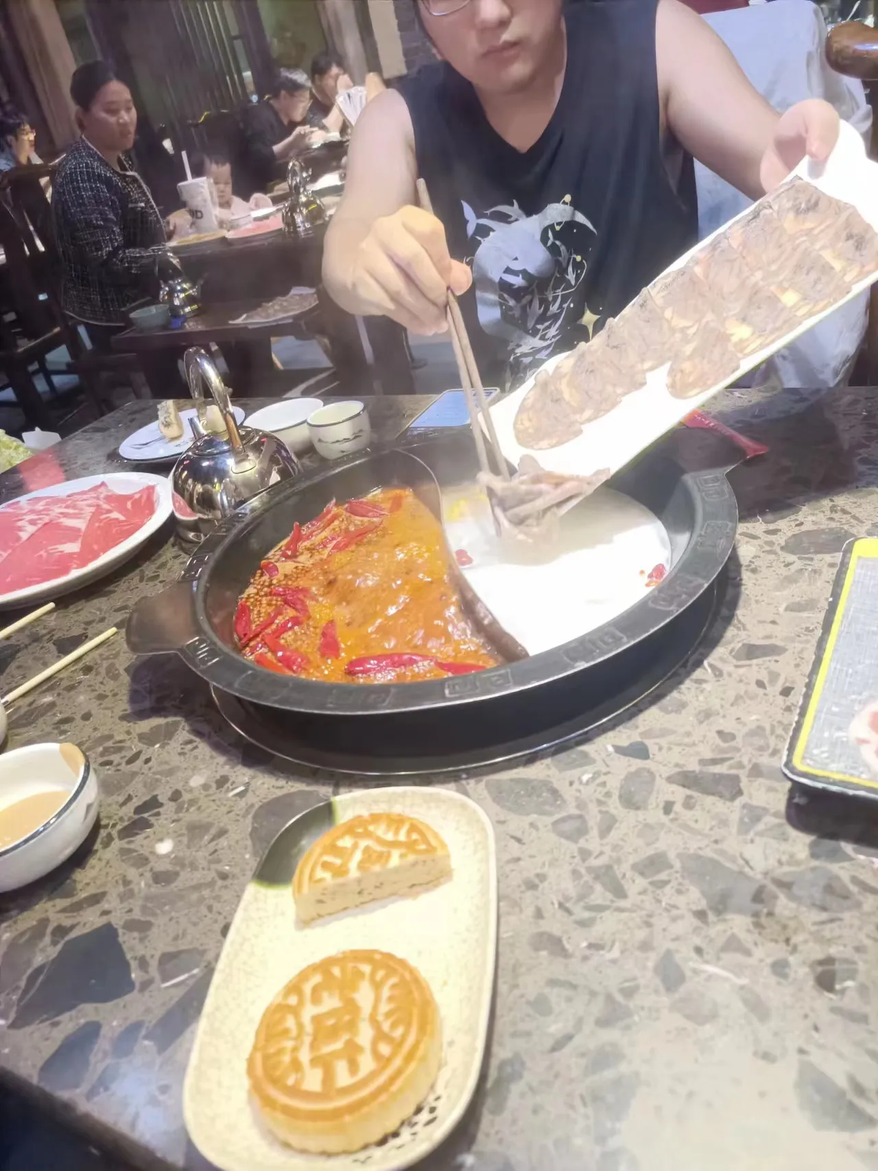 中秋和国庆的假期,我选择留在学校继续学习。中秋节的晚上,我和室友们一起出去吃了火锅,又去了小青城火锅店。老板还很热情地送了我们月饼