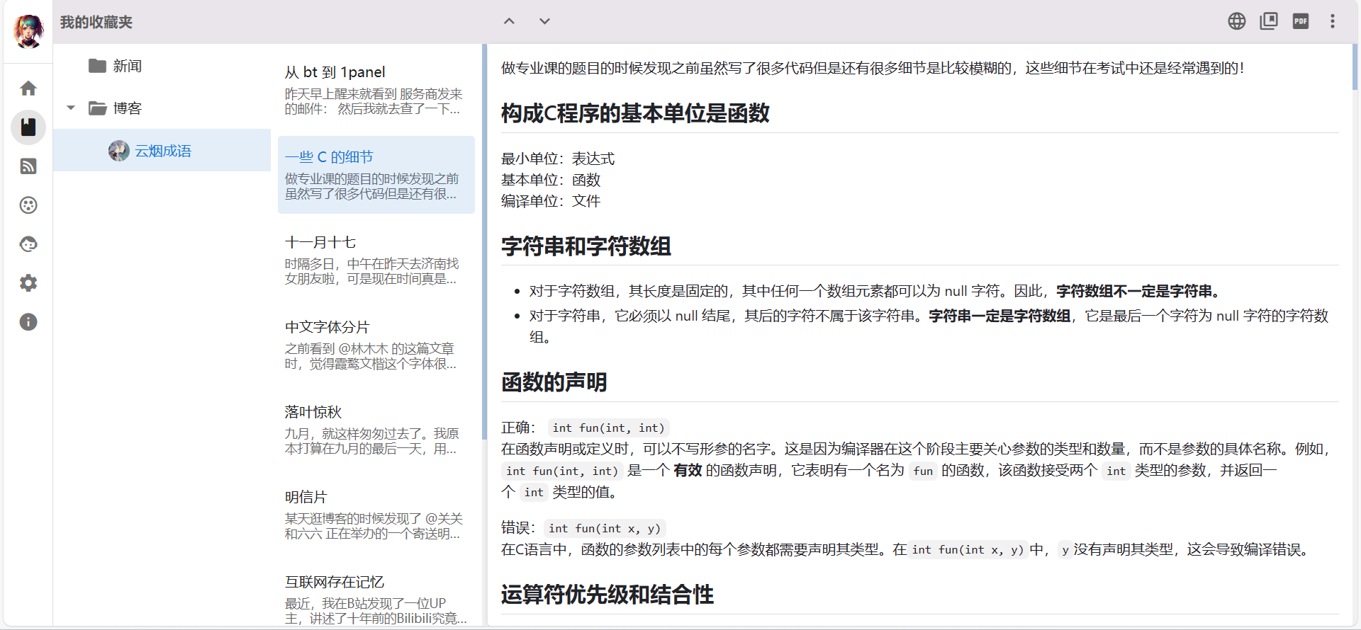 标配的三栏阅读布局