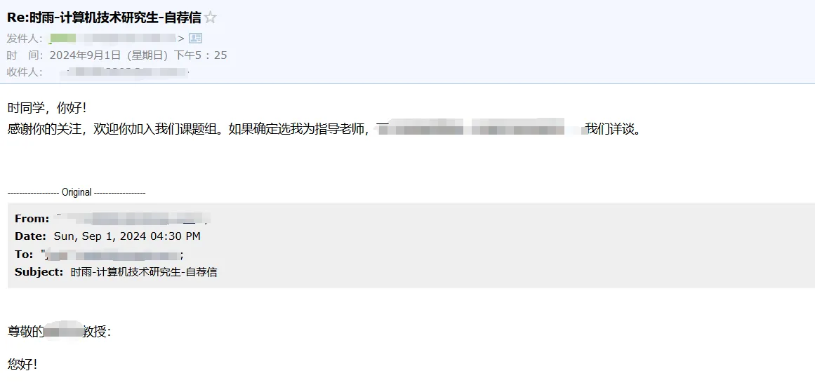 终于开学前几天群里发了还有招生名额的导师,找学长打听了些情况果断联系了我现在的导师,邮件发过去没几个小时老师就回复啦,开学后发现我的导师是很不错的!哈哈哈哈哈确实很幸运,听同门说导师本来就俩名额,复试完就没名额了,开学前几天突然通知是有4个名额,幸亏我在通知后就联系!😍
