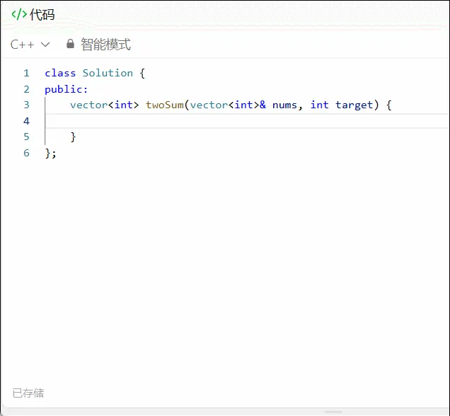 - 打开力扣编辑器,开始编写 C++ 代码,你将能享受到智能补全带来的便捷。