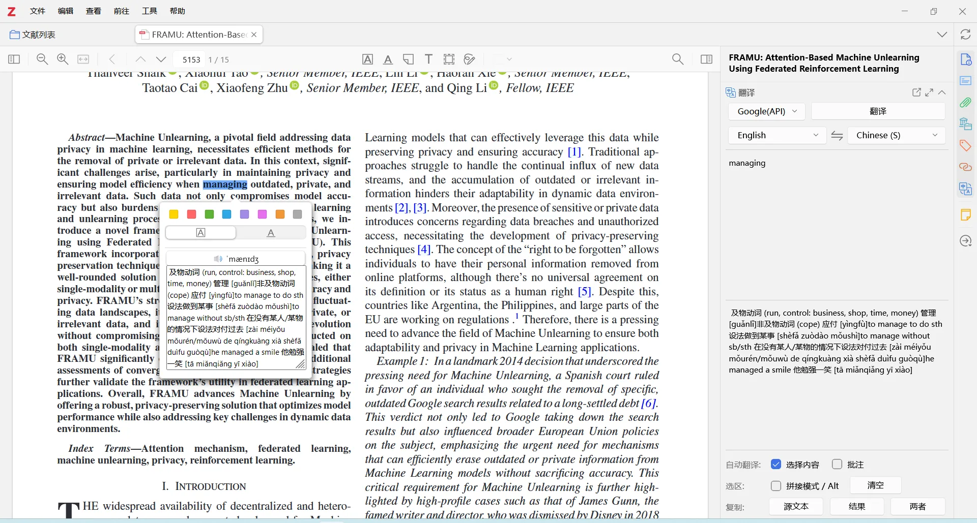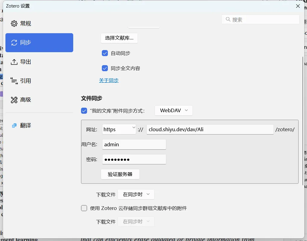有几个地方是我最喜欢的功能,首先是跨平台,全平台都可以用包括Mac,Linux,Windows,安卓,ios,所以我在我的所有设备上都下载了Zotero。另外就是支持WebDav同步,刚好配合alist可以实现把所有的文献笔记相关资料通过阿里云盘进行同步,最后就是支持插件功能,可以扩展软件的功能,我暂时只安装了翻译插件,毕竟我的英语还是太菜啦!