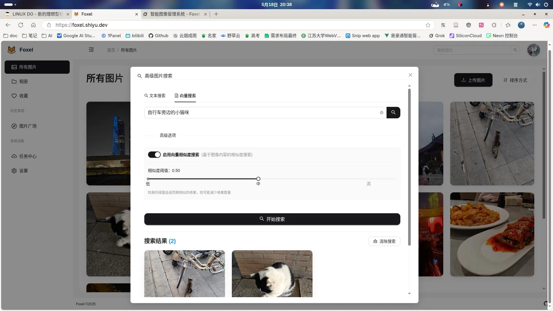 第三个,Foxel(这个可不是弃坑作!)这是正在活跃开发的项目,起源于这个学期的软件工程课程需要做一个项目,就打算做一个结合AI的图片管理系统,哎?我怎么做啥都要结合AI!目前已经在Github开源:https://github.com/DrizzleTime/Foxel