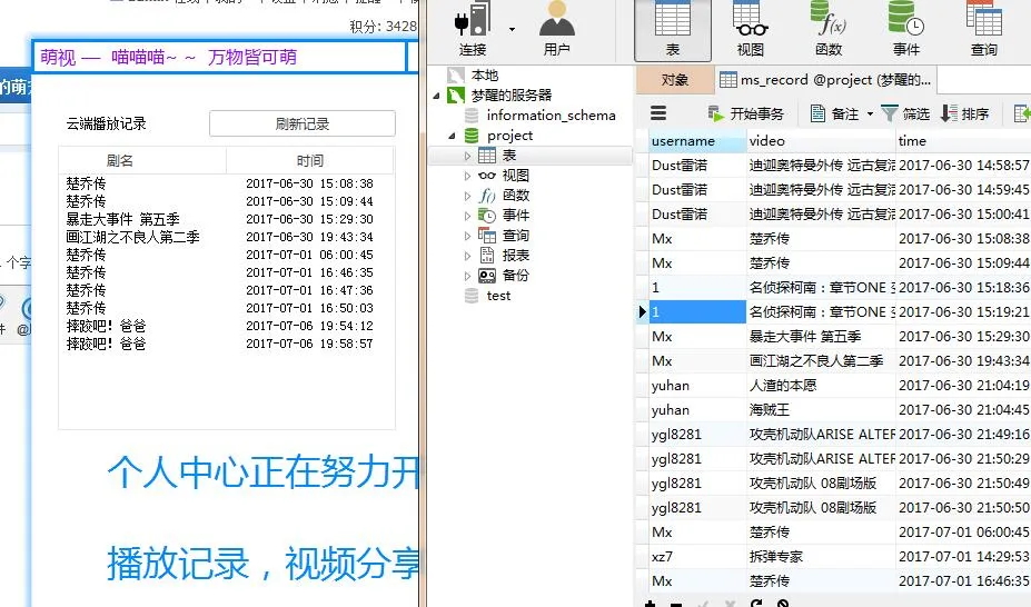 ❯[开源代码]萌视-万物皆可萌_@时雨#日记2017/7/14约 1 分钟软件现有的功能: 注册以及登录(登录会自动记录登录时间以及IP到MySql) 搜索视频,更为强大的搜索功能 视频解析,接口从MySql获取,方便管理 在线更新功能 云端播放记录同步(每看一部视频都会自动记录到MySql) 展示图片: 源码下载: 点我下载 数据库表结构:project